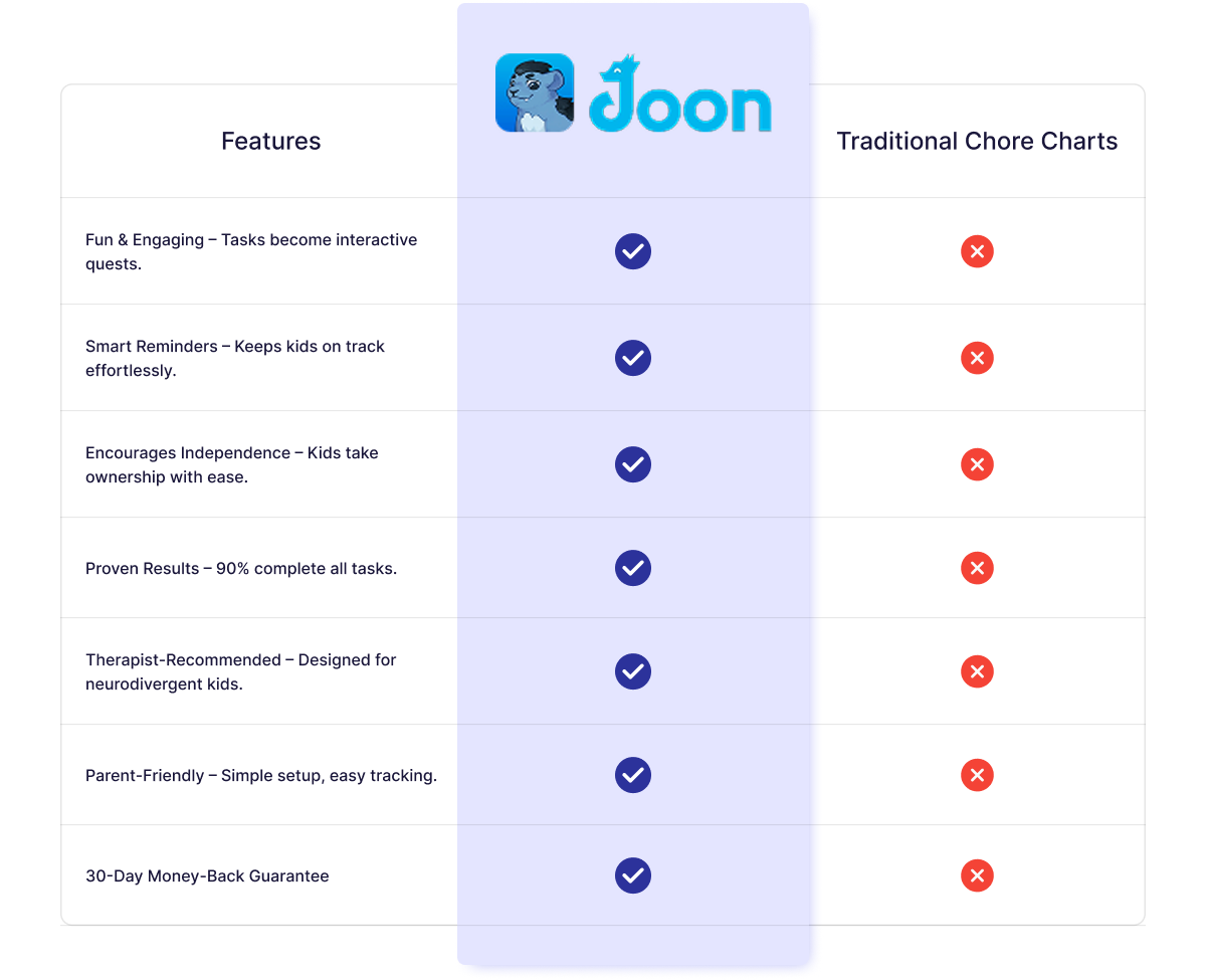 Select from a list of age-appropriate chores or create your own, Joon transforms them into engaging challenges with rewards.